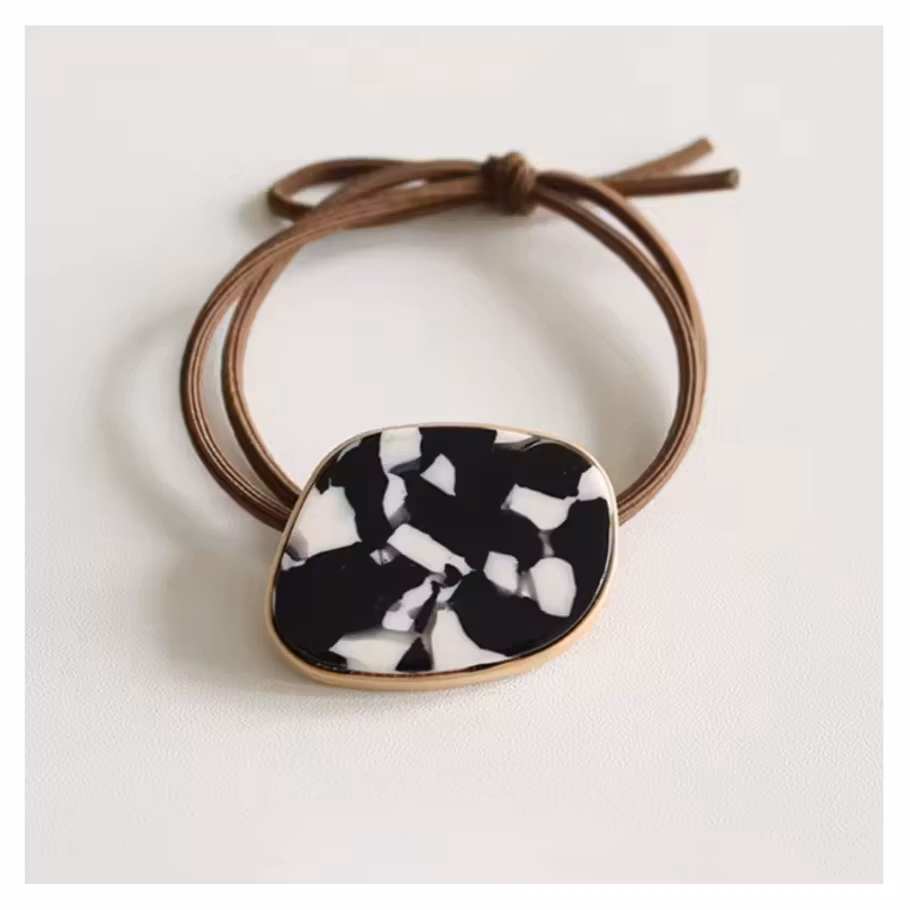 Det elastiska hårbandet sitter bekvämt i håret utan att slita och passar lika bra för låg hästsvans som för uppsatt frisyr. En stilren accessoar som lyfter din look med en modern och elegant kontrast.