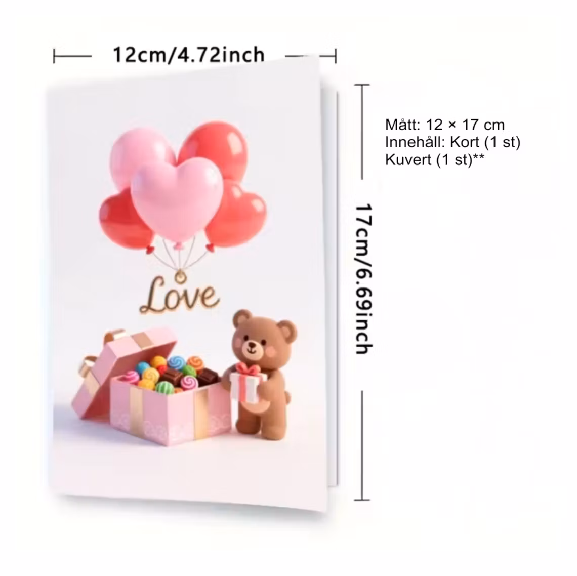 – Kort: 12 × 17 cm