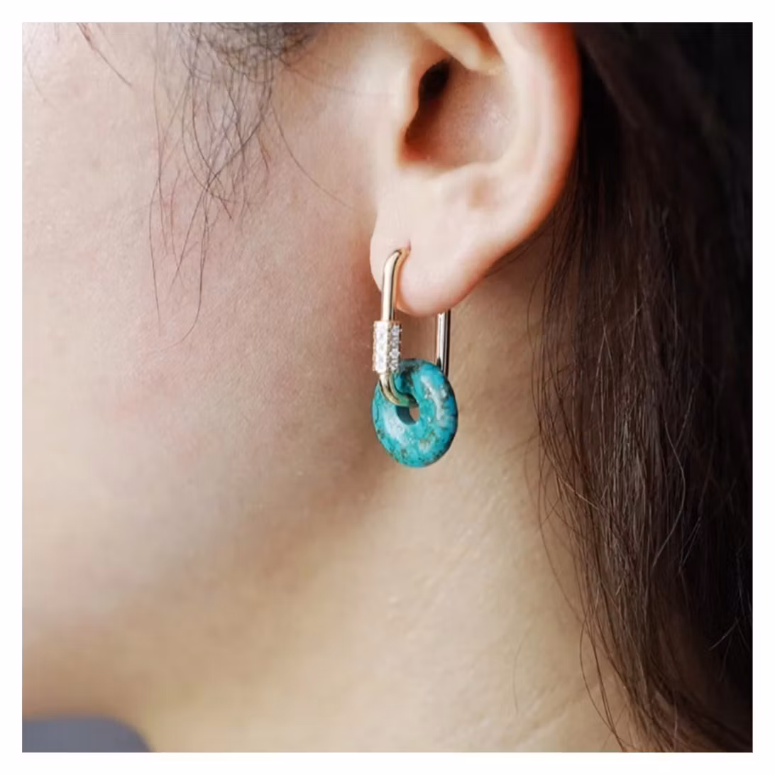 Eleganta örhängen med äkta turkos (Turquoise) – en naturlig sten känd för sina livfulla blå toner och unika mönster. Varje sten är unik och ger smycket en fräsch, exklusiv och iögonfallande känsla.